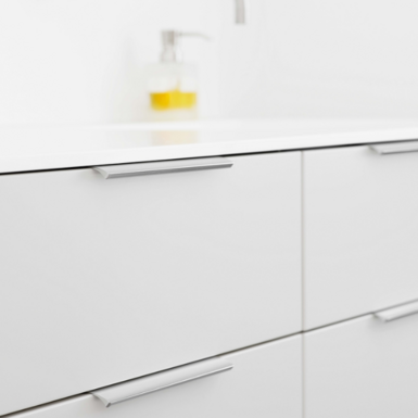 Deze grepen zijn eenvoudig te plaatsen op bestaande of nieuwe fronten. De grepen zijn verkrijgbaar in verschillende lengtes en kleuren en materialen. De grepen worden aan de achterzijde van het front vastgezet met schroeven. De grepen met schroefbevestiging zijn eenvoudig in en verwerking en prettig in gebruik.
